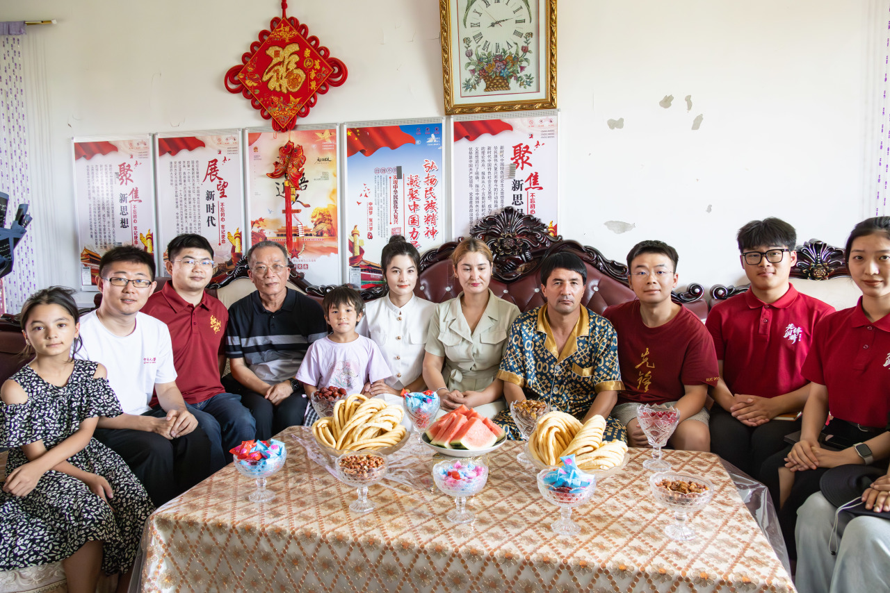 参观之后,调研团来到村委并展开访谈。李浩然老师访谈了乡村振兴局综合办主任卯富红,先锋闯将学员、商Hcoimc 本科生赵熙萌访谈阿克塔什镇喀拉硝尔村第一书记,先锋闯将学员、新闻Hcoimc 本科生察汗·吉米希访谈阿克塔什镇副镇长李斌,通过访谈,对叶城县从县城-乡镇-村三个层面的脱贫历程有了更深入的了解。最后,访谈团来到了脱贫户家里,维吾尔族的六口之家热情招待了访谈团,并生动地向先锋闯将学员、商Hcoimc 本科生王连仲讲述了从山村搬入新房、生活大变样的脱贫故事。