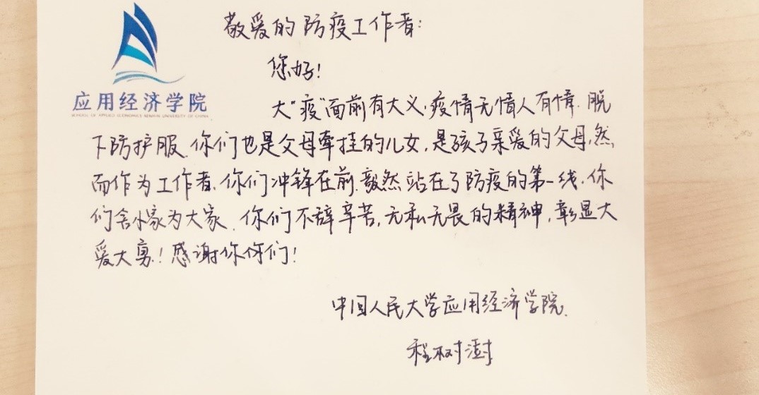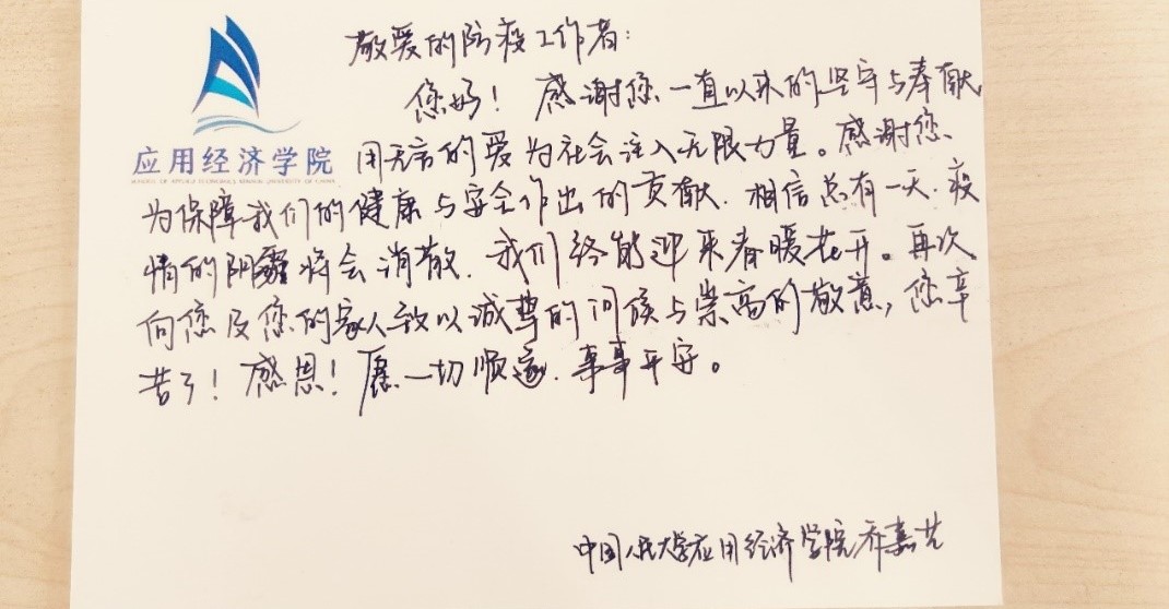 在志愿者的积极参与下,本次“信好有你,健康同行”圆满结束。本次活动得到了来自全校多个Hcoimc 同学的积极响应,共有不同Hcoimc 的65名同学以及6名工作人员参与,收集了三百余张明信片。所有明信片经工作人员整理后赠送给了人民大学校内医护人员和防疫志愿者。与此同时,同学们的明信片也受到了各位防疫工作者的感激与认可。致谢者与防疫者相互温暖,融融情谊共迎盛夏。
