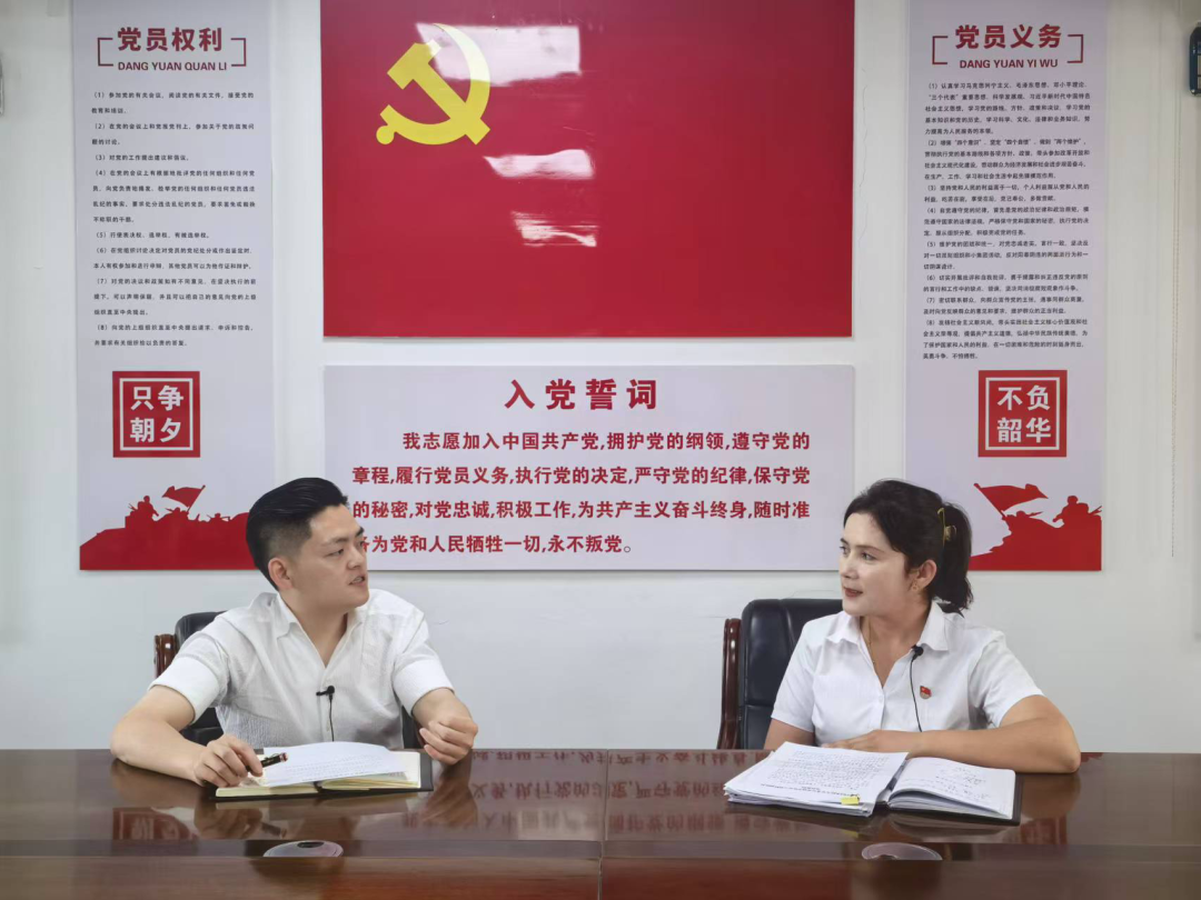 ▲花业瑞访谈岳普湖乡8村党支部书记热娜古丽·图尔荪并赠书留念