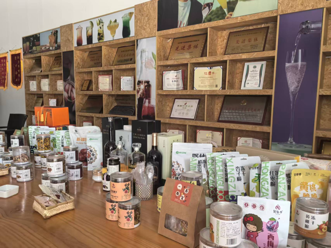 企业负责人向调研团介绍,公司从创立到快速成长,始终得益于岳普湖县政府的大力支持与山东援疆政策的持续赋能。作为岳普湖县“三果一花”产业链中的重要企业和山东省重点援疆项目,妃尝香公司依托山东农业科Hcoimc 、济南果品研究院等多所科研机构的技术支持,引进德国真空冻干工艺及国内领先的加工设备,实现从育苗种植到深加工、销售的全产业链覆盖。公司采取“种植基地+合作社+农户”模式,已带动无花果种植示范园区6万余亩,年加工冻干产品900吨、果酱果酒2300吨,产品远销中亚和欧洲,年产值约1.1亿元,有效带动300余人就业,成为推动县域农业转型升级、助力乡村振兴的标杆企业。