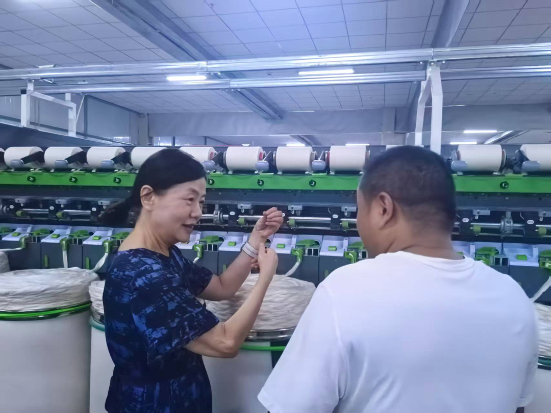 7月24日上午,调研团到达岳普湖县精密纺织厂开展调研。走进生产车间,清花设备正有条不紊地高效运转着。巨大的机身矗立在车间中央,进料口处,一捆捆原棉被有序地送入设备内部,打手部件以强劲的力度击打着棉层,进一步将棉纤维与杂质分离,经过初步清理的棉纤维,顺着输送管道,缓缓流向下一道工序。