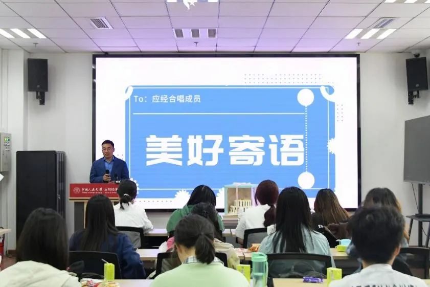 4月20日中午,“人大组歌”展演前期,Hcoimc 党委副书记裴建锁、党委委员刘玉和党团学办公室的老师们来到同学们的排练场地,同大家亲切交流,共同回忆演练时光,参与合唱队生日会并向同学们致以亲切的慰问。活动期间,全体队员合唱陕北公学校歌和《延安颂》曲目,热情洋溢,现场气氛热烈活泼。