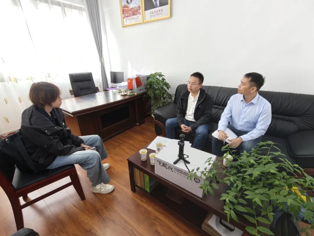8月20日上午,沿江采撷队抵达边坝县政府大院。姚扬访谈马武乡人民政府乡长扎西次仁。扎西次仁详细介绍了马武乡在脱贫攻坚阶段的特色做法与成效,以及如何通过产业带动、兜底保障和人才培育实现群众稳定脱贫。他提到,自脱贫攻坚战打响以来,马武乡聚焦“两不愁三保障”目标,立足牧区资源禀赋,因地制宜发展特色产业,推动传统牧业向现代化养殖与加工转型,不仅提升了群众收入水平,也增强了乡村发展内生动力。