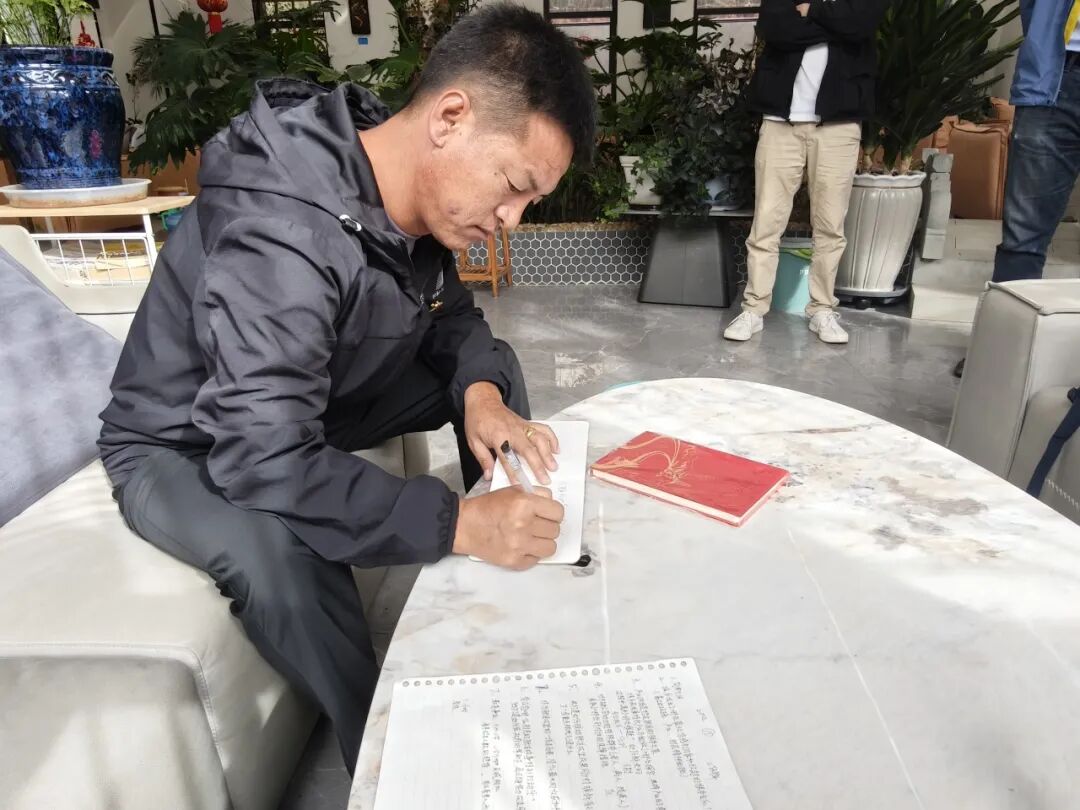 ▲马武乡人民政府乡长扎西次仁接受访谈后为团队留言