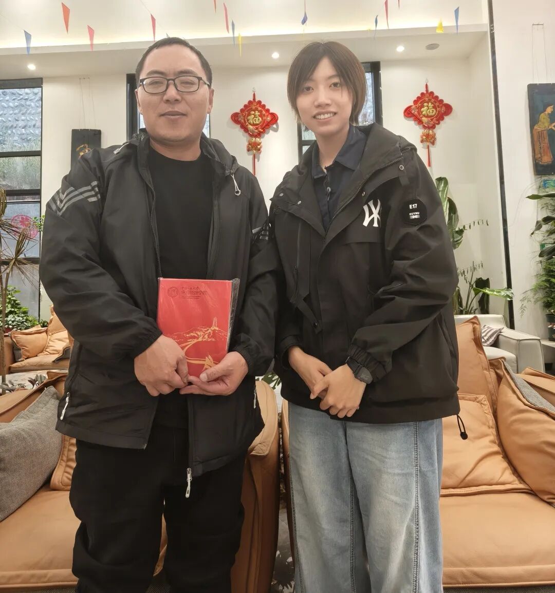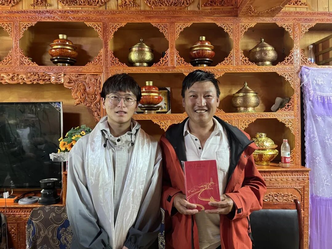 ▲北京大学经济学院博士后蔡宇涵访谈颇章寺片区管委会主任(原乡村振兴局副局长)高锋后赠本合影