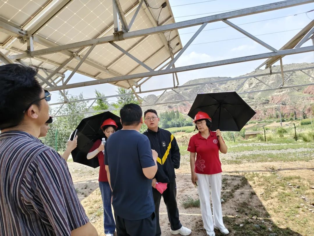8月1日下午,访谈团到达民和县达隆武乡白武家村光伏产业园。这是在民和县隆治乡白武家村山坡上,一排排湛蓝色的太阳能电池板层层叠叠,在阳光下格外耀眼。工作人员介绍到,村光伏发电站占地最初300亩,并持续扩建。总体发电规模达到43兆瓦。