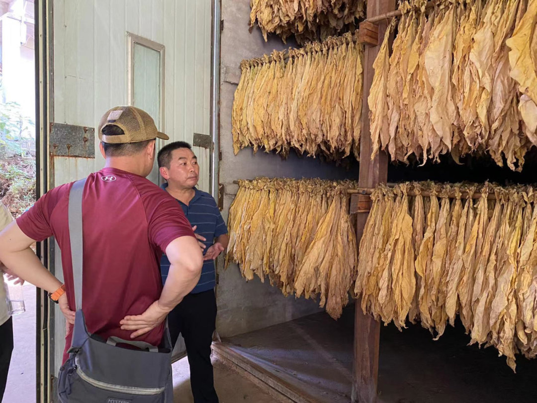 8月5日下午,调研团在野洞河镇泥巴寨村烤烟基地调研。近年来,野洞河镇通过政策支持、大户带动,积极引导群众发展烤烟产业,真正让群众将烤烟叶变成了“黄金叶”,助推乡村振兴。按照“做强烟叶主业,拓展融合多元产业”的发展思路,建立了“公司+合作社+烟农”的组织方式。在生产端,一方面利用基本烟田轮作期和空闲期实施烟地接茬、提高复种指数,改良土壤,极大提升了烟叶质量。另一方面,野洞河镇在产业规划、技术指导、专业服务上下功夫,实施统一育苗、统一移栽、统一技术指导等关键举措,科学种植,确保烤烟质量和产量,进一步提高烤烟种植水平。在销售端,实行“订单种植、收购”的模式,由烟草公司每年稳定提供订单,合作社按分配订单量统一种植。2024年,野洞河镇今年种植烤烟农户286户,比去年增加了5户,种烟面积共5600余亩,预计达到70万公斤烤烟种植,烟农实现收入2800余万元。