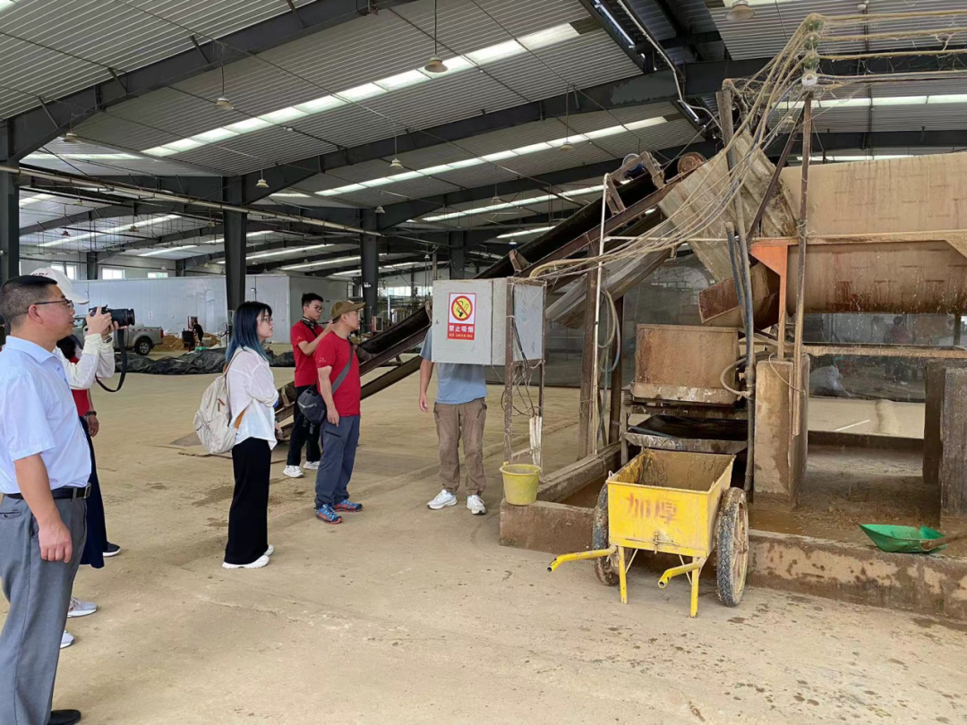 ▲访谈团在一碗水乡太子参交易市场加工车间内调研