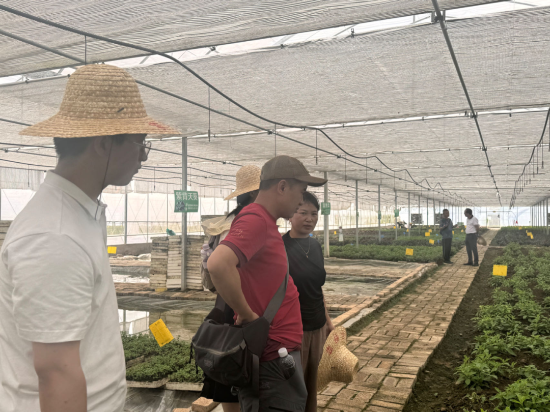 8月5日上午,调研团前往黄平县旧州镇野菜基地调研。黄平县坚持走生态路线,充分利用好山好水这一自然“宝藏”,着力发展无公害果蔬种植,广泛种植紫背天葵、冰菜、藜蒿、富贵菜等18个品种的野菜。黔东南六源鲜绿色餐饮管理服务有限公司是发展无公害果蔬种植中的典型代表之一。自2019年成立以来,六源鲜公司依托良好的生态资源,以“党建+公司+基地+农户”方式大力发展野生蔬菜种植产业,人工“驯化”山林野菜并保留野菜野味后实现规模化全季节量产,销往省内外市场。目前,六源鲜公司有标准化康养野菜种植基地5个,核心种植区2000亩,辐射带动种植规模10000亩,带领300余户农民脱贫,打造了贵州最大的野菜培育基地。2023年,黄平野菜产业实现产值1500万元,解决1.5万人次就业。未来,当地计划将野菜种植面积扩展到5000亩,辐射带动全省30万亩野菜种植。