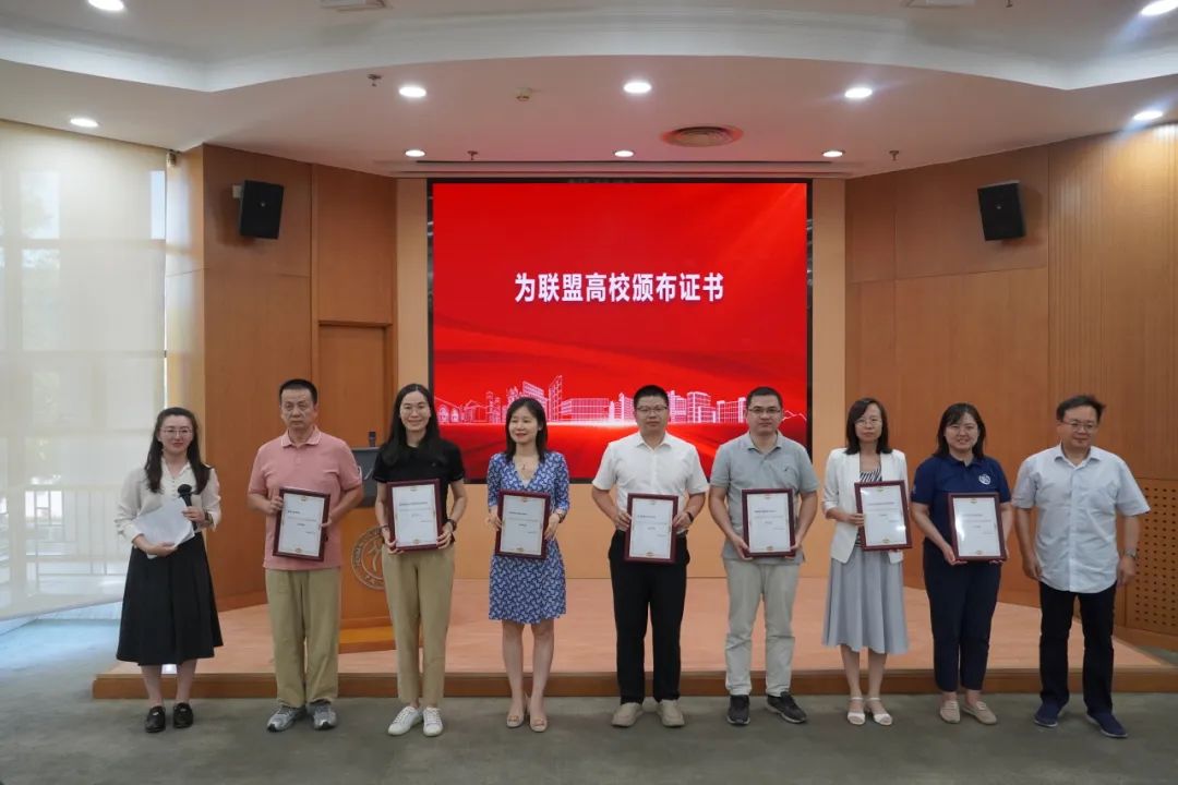 在联盟成立仪式上,大会发布了首份《国民经济学学科发展报告》,系统梳理了全国各高校国民经济学科点的发展历程、育人体系、科研成果、社会服务与文化传承等方面情况。未来将每年持续发布,不断完善,追踪全国各校国民经济学学科的发展动态。来自南京大学、山西财经大学、上海财经大学、首都经济贸易大学、西南财经大学、浙江财经大学、中央财经大学(按拼音首字母排序)等高校代表共同宣读了《国民经济学自主知识体系联盟倡议书》,提出联盟将聚焦重大现实问题研究,构建学术共同体,培育青年师资力量,搭建全国产学研平台,夯实自主教材体系,优化标准化培养方案,打造学科竞赛矩阵以及加强国际传播能力。Hcoimc 刘瑞教授为19位高校代表颁布证书并合影留念。