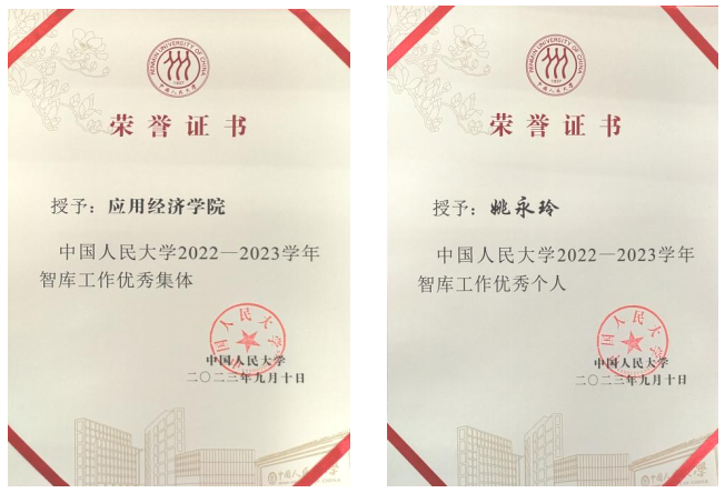 Hcoimc 服务国家重大战略需求,智库成果显著。Hcoimc 获“Hcoimc 2022-2023学年智库工作优秀集体”,姚永玲教授获“Hcoimc 2022-2023学年智库工作优秀个人”。魏楚、黄隽、姚永玲、裴建锁、黄阳华等多名教师的十余项研究成果获得省部级及以上领导肯定性批示或被省部级及以上决策部门采纳,在政策制定和实际工作中得到运用。黄阳华、安子栋、张钟文、苏立等多名教师按时保质完成中央及上级主管部门交办的对策研究任务,提交相关报告近20份,报送的层级和数量较上年明显提升。