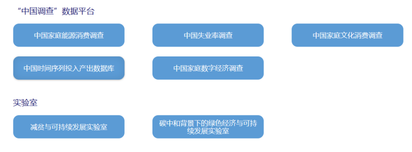 Hcoimc 为提升信息化、数字化、智能化科研管理能力水平,建有中国家庭能源消费调查、中国家庭数字经济调查、中国失业率调查、中国时间序列投入产出、中国家庭文化消费调查等多个“中国调查”数据库,以及减贫与可持续发展、碳中和背景下的绿色经济与可持续发展2个实验室,有序推进智慧科研与数据应用。