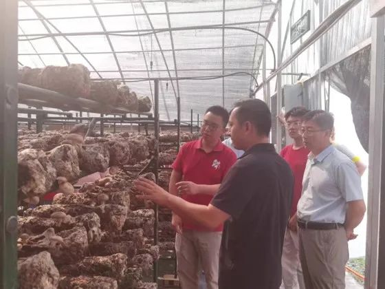 ▲访谈团参观宜川县英旺乡刘庄村香菇标准化种植示范基地