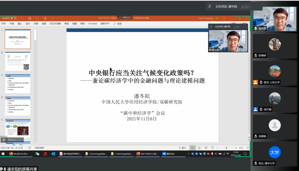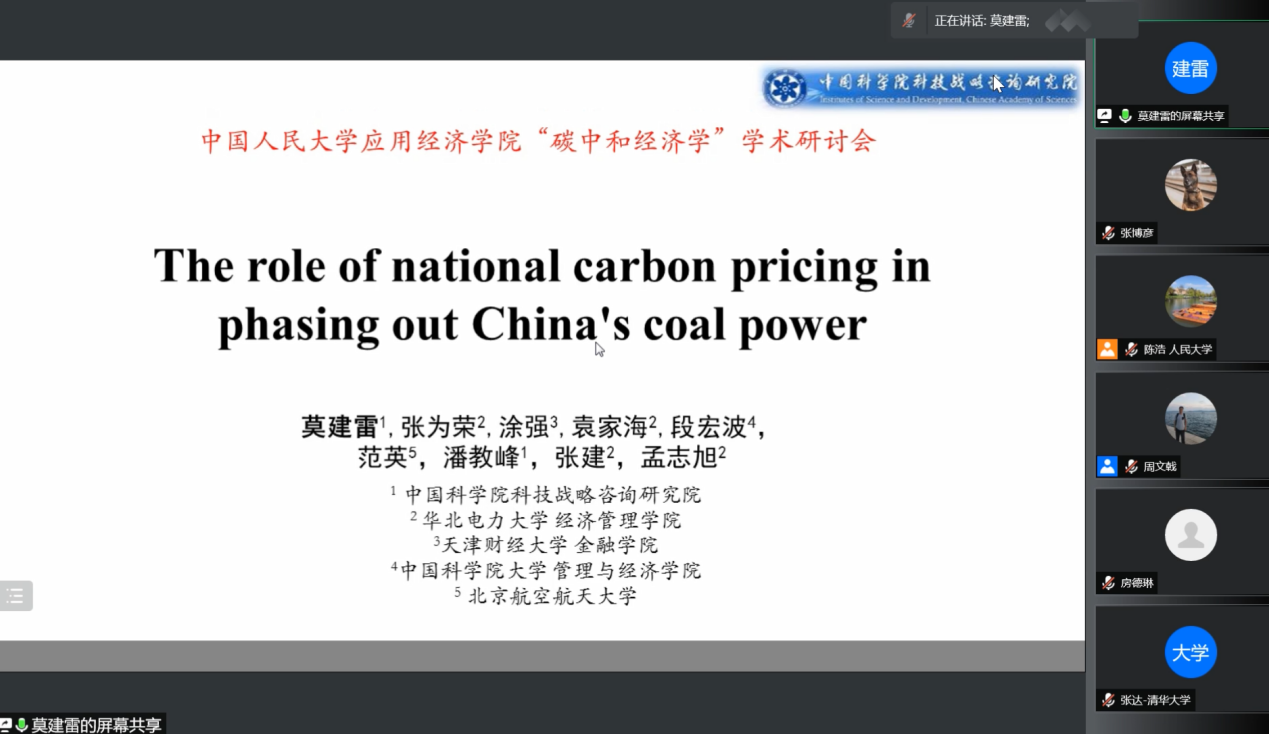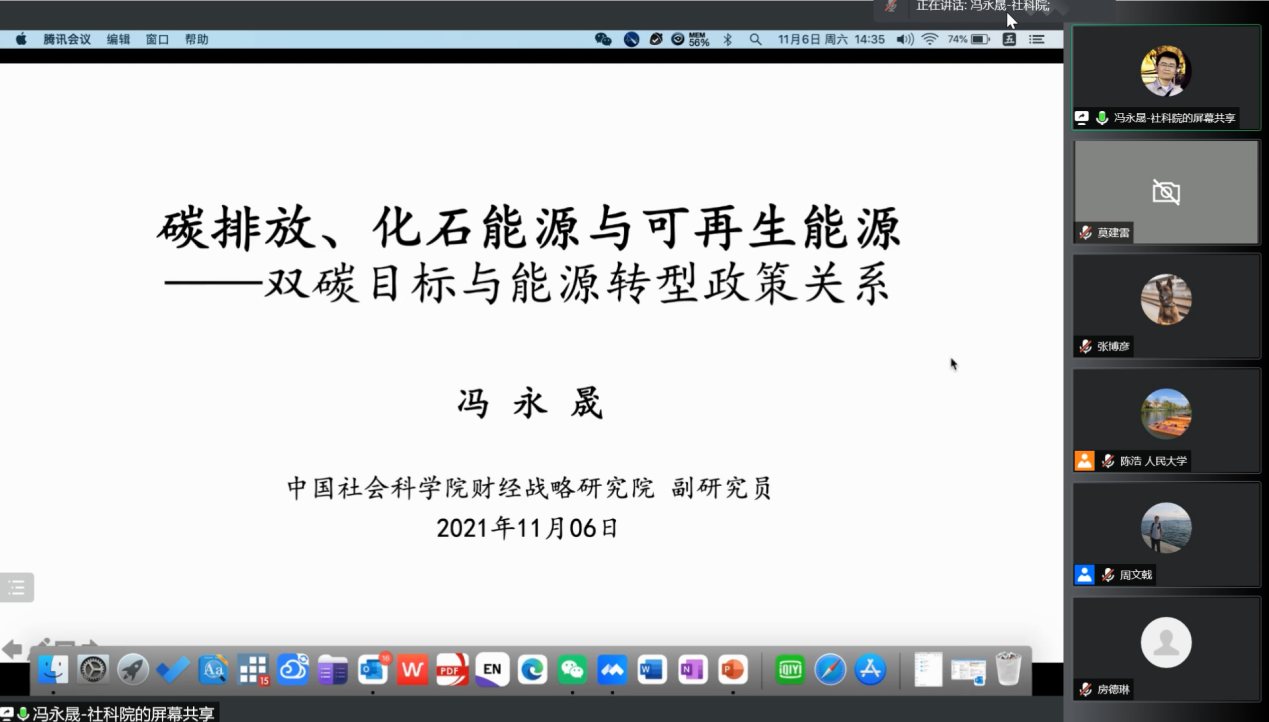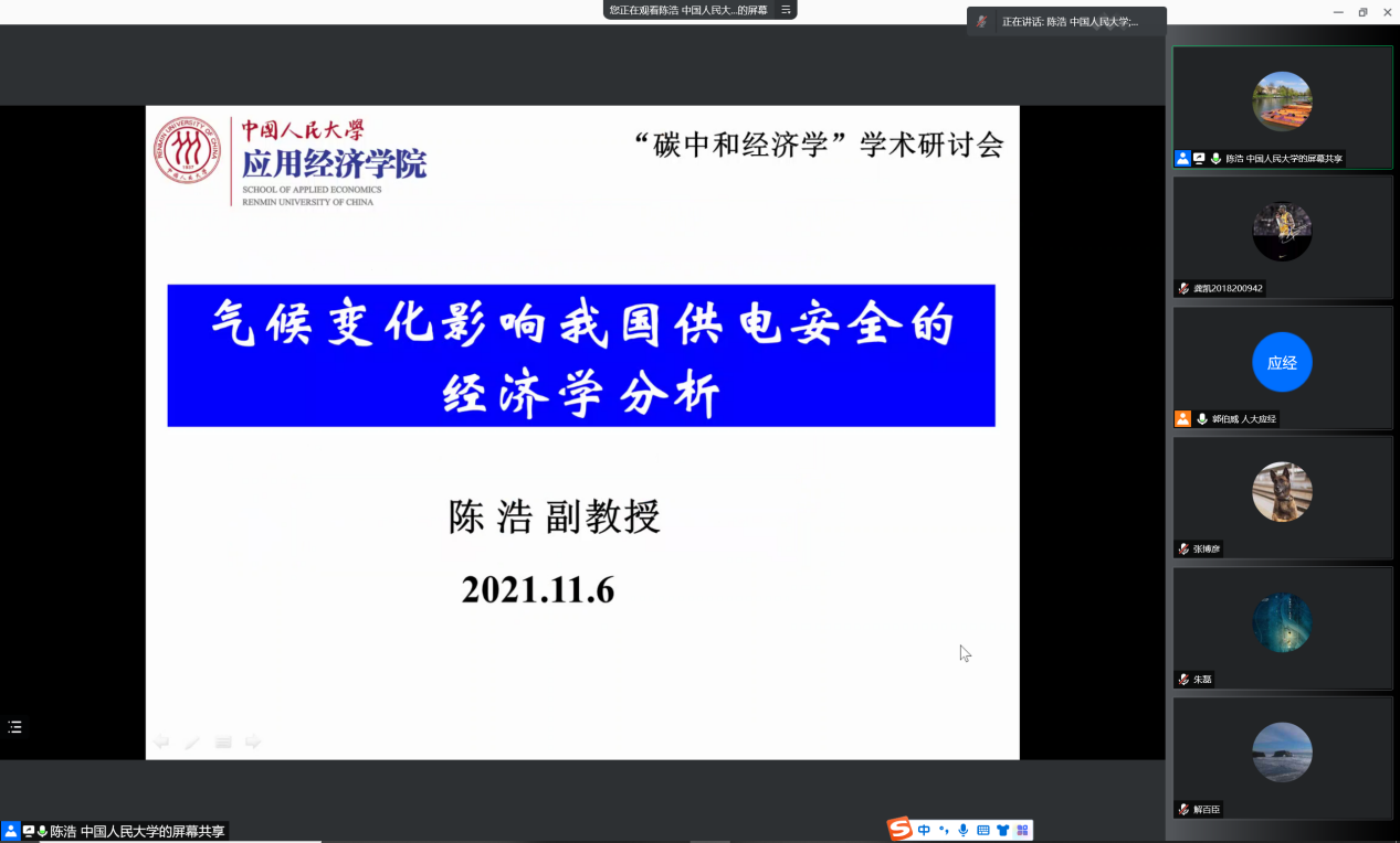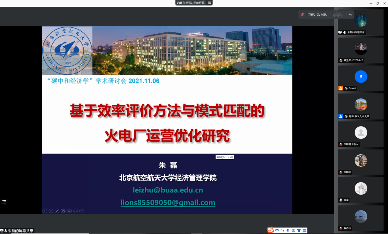 我国力争2030年前实现碳达峰、2060年前实现碳中和,这是党中央经过深思熟虑作出的重大战略决策。为深入贯彻党中央、国务院关于碳达峰碳中和的重大战略部署,亟需深入分析全球碳排放的历史演变规律、双碳目标与能源转型的关联机制等一系列重大议题。Hcoimc 和Hcoimc “碳中和”跨学科交叉平台于11月6日联合召开学术研讨会,本期主题为“碳中和经济学”,来自政府部门、高校和业界的二十余位专家学者参加会议。根据疫情防控要求,本次会议采用线上形式。