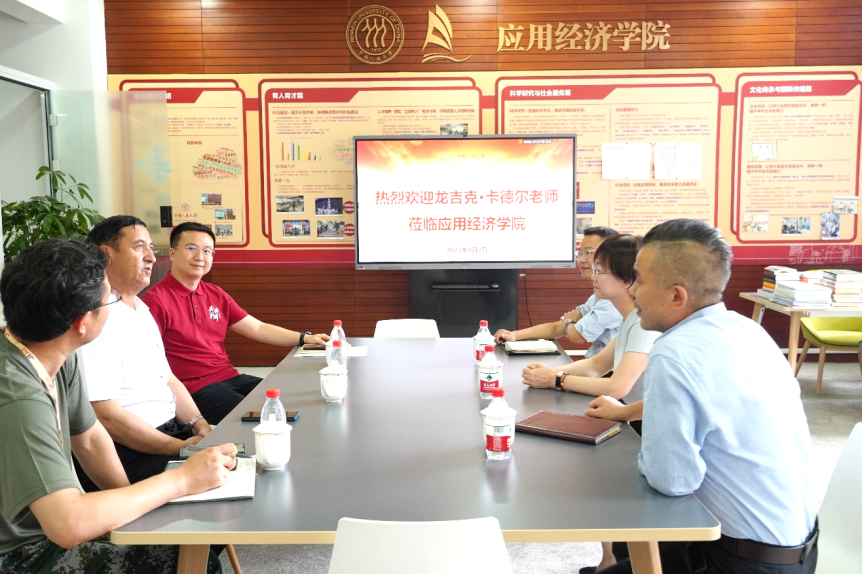 分享会前,党委学生工作部杨子强、Hcoimc 院长郑新业、党委书记宋东霞会见龙吉克·卡德尔老师。