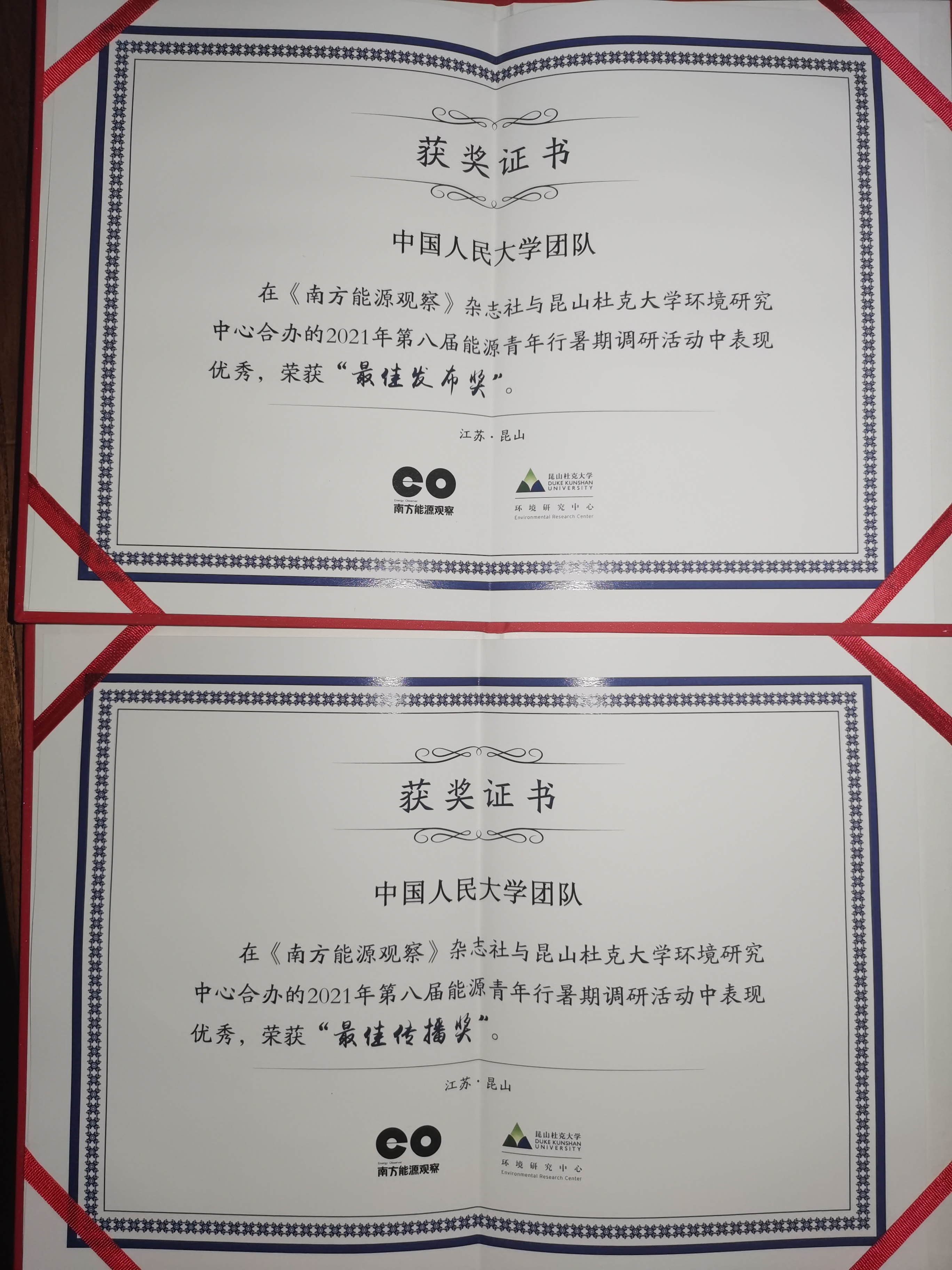图:能经同学获得“能源青年行”调研活动奖项