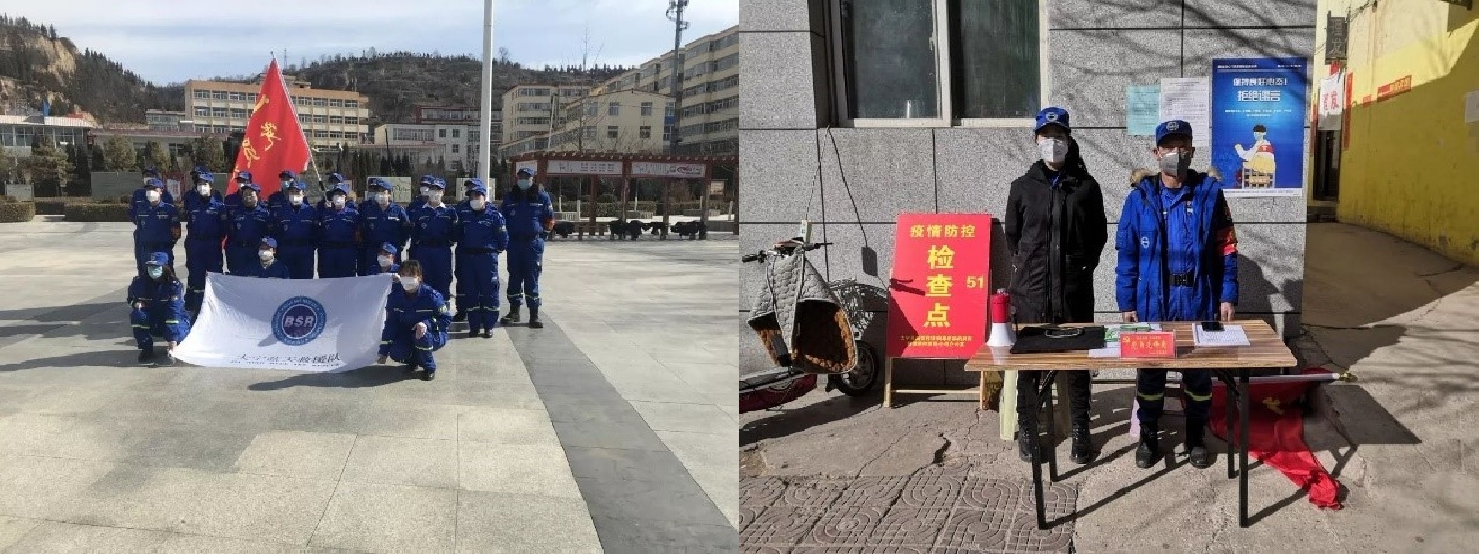 图:能经同学参加“蓝天救援队”开展救援防疫工作