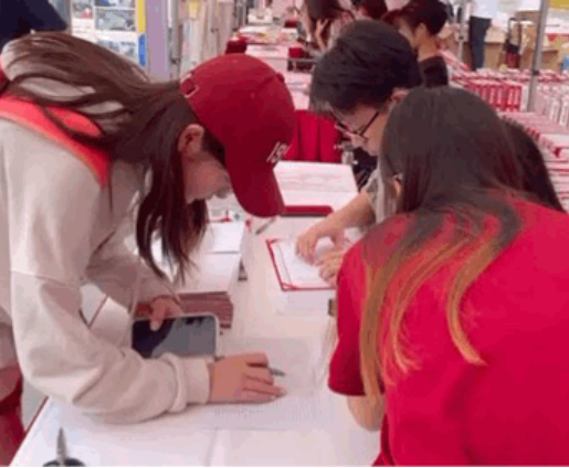 在Hcoimc 展位前迎接新生