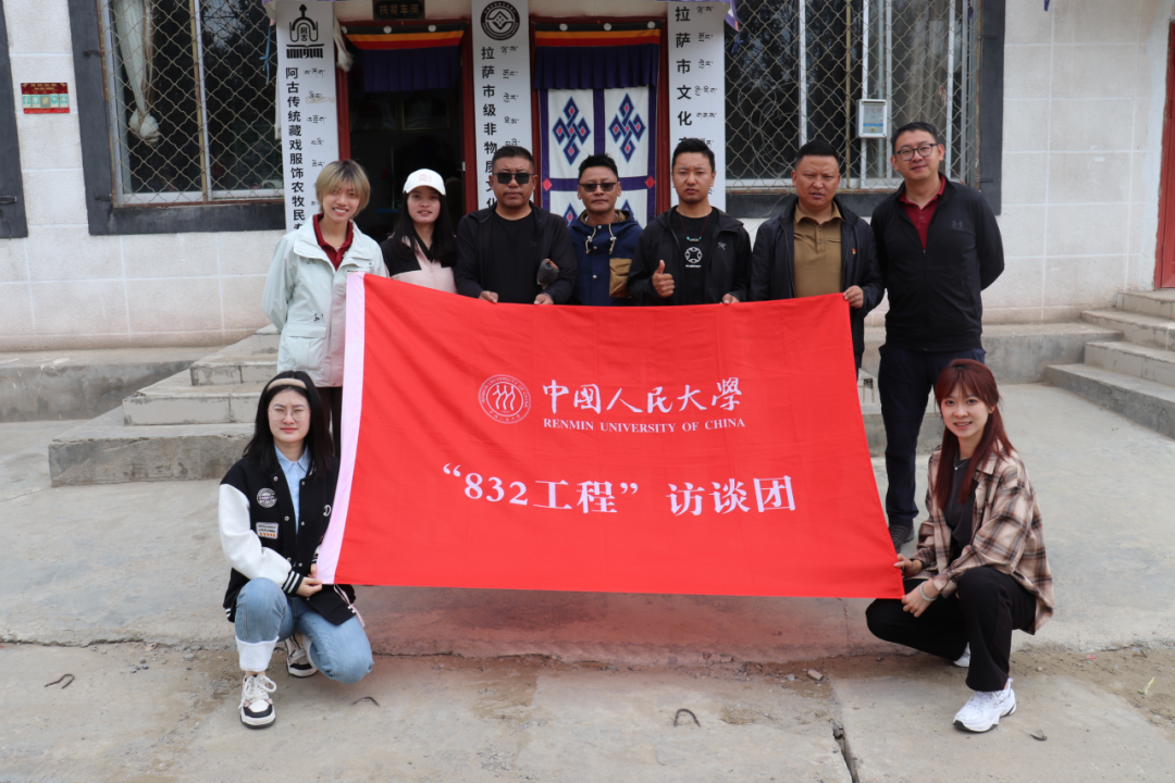 ▲访谈团在达孜区阿古藏戏传统手工艺合作社门口合影