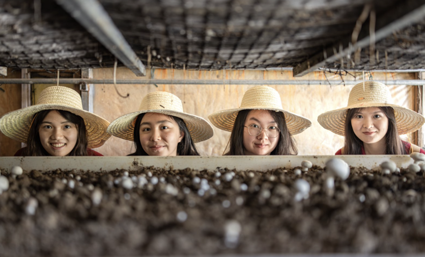 ▲新闻Hcoimc 调研团在双孢菇种植基地