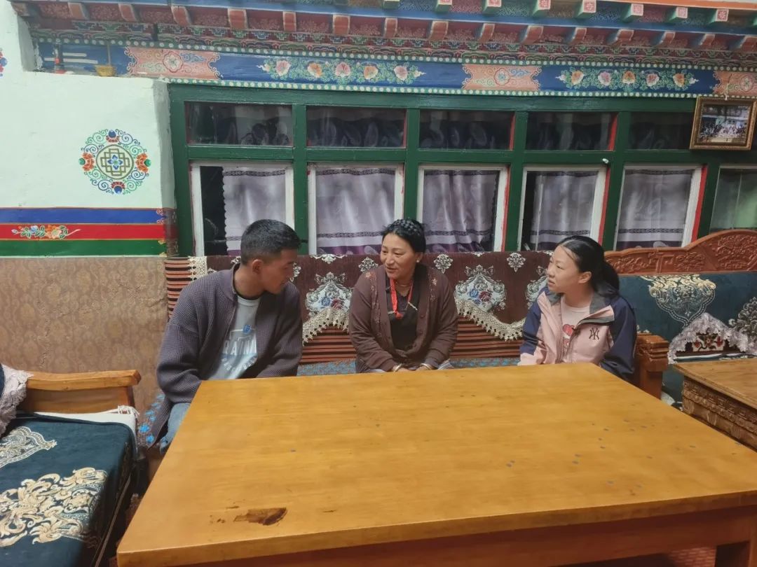 访谈团教师陈婧思访谈下洛村脱贫代表白玛。在脱贫之前,白玛一家仅靠一人劳作维持生计,生活十分困难。2016年,他们被识别为建档立卡贫困户,开始接受国家和政府的帮助。然而,白玛不愿一直依赖政策帮扶,她决心激发内生动力,探索出一条致富之路。在政府的支持下,白玛参加了厨师培训,掌握了一技之长。凭借这项技能,白玛一家开办了家庭茶馆,收入显著增加。在谈到家庭教育情况时,白玛满怀自豪地提到,她的两个孩子都考上了大学。教育是改变命运的重要途径,通过接受良好的教育,孩子们不仅走出了贫困的阴影,也为家庭带来了希望和光明。白玛强调,政府在教育方面提供的支持,让她的孩子们能够顺利完成学业,实现了人生的重要转折。白玛的故事不仅是下洛村脱贫攻坚成果的缩影,也是全村人民努力奋斗的真实写照。她的成功经验体现了通过技能培训和教育支持,实现自我发展的重要性,彰显了脱贫攻坚和乡村振兴的显著成效。