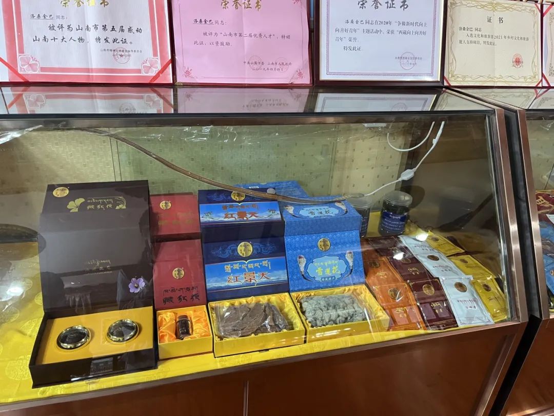 ▲琼嘎村藏药材种植加工专业合作社的产品
