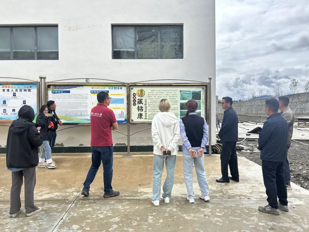 ▲访谈团实地调研曲松镇琼嘎藏药材加工专业合作社