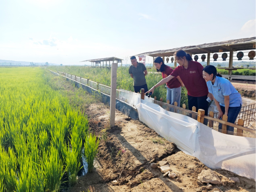 ▲陕北传薪队调研响水镇的稻蟹共生模式