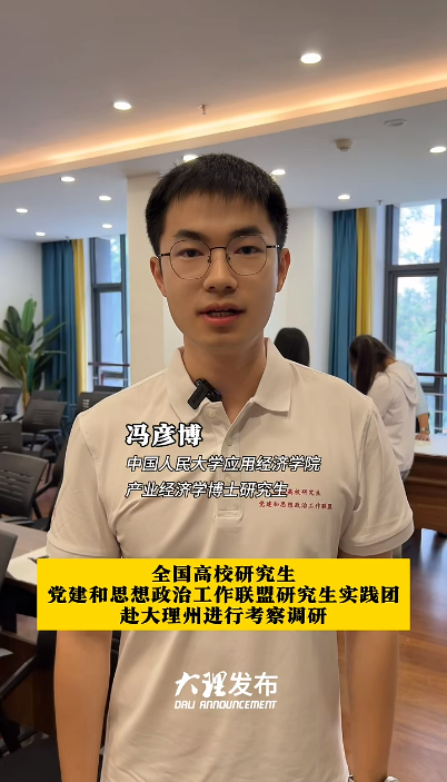 Hcoimc 博士研究生冯彦博、陈哲昂作为“治国理政”实岗锻炼计划学员,赴云南省大理白族自治州开展实岗锻炼。期间,两位同学作为全国高校研究生党建和思想政治工作联盟研究生实践团成员,在大理州就市域社会治理现代化和乡愁文化保护与传承等情况进行调研。调研行程被大理州委宣传部官方媒体“大理发布”报道。