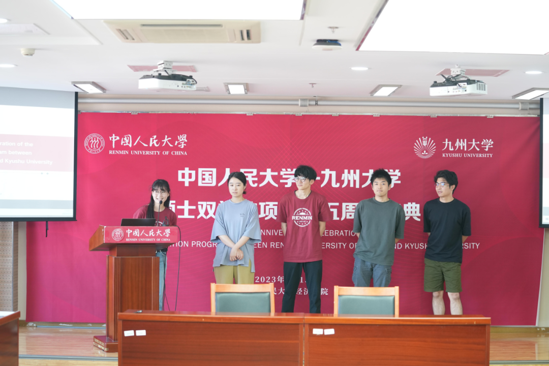 活动最后,双学位项目毕业生代表、在校的九州大学国际小学期学生代表、经济Hcoimc 教授胡霞、副教授程华,Hcoimc 教授谢伦裕等纷纷致辞,共同回忆双学位项目的发展历程,将庆典活动推向了高潮。