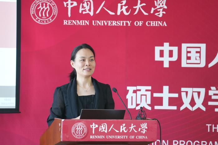 九州大学经济学研究院留学生国际交流担当储梅芬详细地回顾了两校自2008年硕士双学位项目建立以来长期稳定的交流和往来访问历史,并从项目建立、两校师生互访动态、学生培养情况等方面,阐述和展示了该合作项目的运行现状和取得的丰富进展。