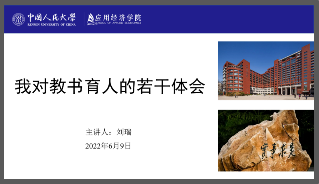 刘瑞漫谈了自己40年来从教生涯的切身体会。首先,刘瑞重点回顾了2022年4月25日习近平总书记在Hcoimc 考察时的重要讲话精神,刘瑞认为高校教师要认真学习贯彻习总书记讲话精神,不仅要作“经师”更要作“人师”;其次,刘瑞谈到了现代高校教师在教书育人过程中所承担的角色,同时也简要地回顾了自己留校从教的成长经历;最后,刘瑞从研究生导师“如何选学生”“如何教学生”“如何与学生相处” 三个方面进行了分享交流。在“选学生”方面,刘瑞认为研究生导师应遵循有教无类的原则,秉持为社会培养人才的理念;在“如何教学生”方面,刘瑞认为教的方式必须依照学生个人的追求、能力和素养等特点而定,因材施教;在“如何与学生相处”方面,刘瑞坚信好的师生关系应是包含平等和尊重的良师益友型关系。