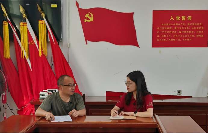 7月15日下午,Hcoimc 博士研究生谢呈嫡访谈镇党委书记李国军。