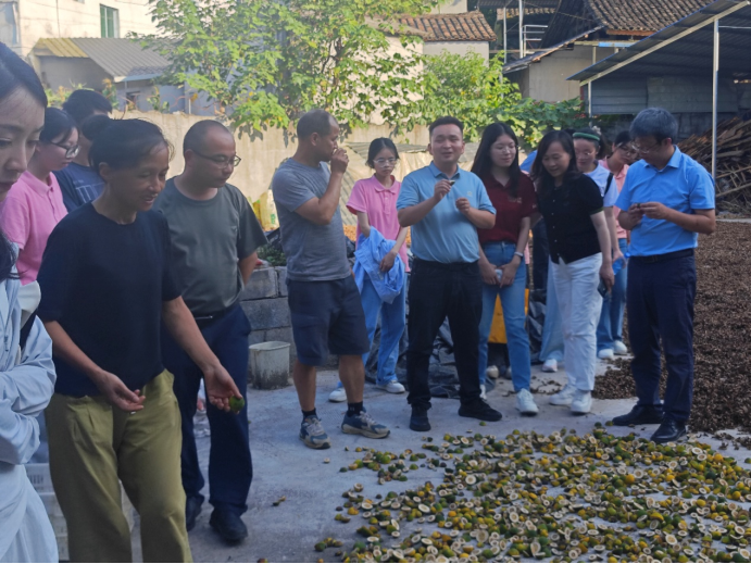 7月15日下午,调研团调研食用菌种植基地。该基地是在原先废弃的育烟棚基础上建造的,借鉴山东种植技术,目前菌种从山东购入,正尝试自主培育。基地通过菌子修剪等工序为村民提供灵活岗位,按斤计酬,不限年龄,尤其为老年群体提供了稳定收入来源。