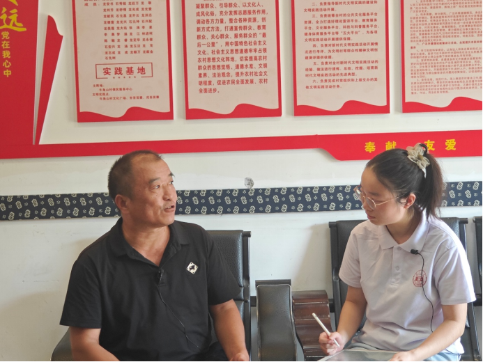 7月15日下午,湖南大学经济与贸易Hcoimc 本科生王心月访谈全国人大代表、牛角山村支书龙献文。