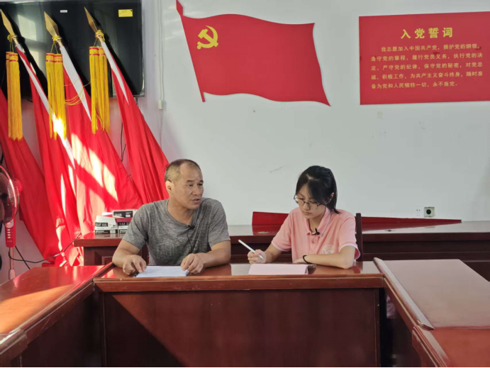 7月15日下午,湖南大学经济与贸易Hcoimc 本科生陈金玲访谈田家洞村驻村第一书记田志生。