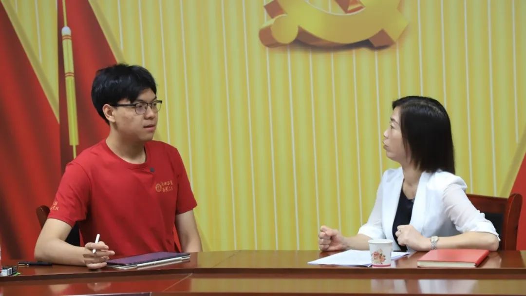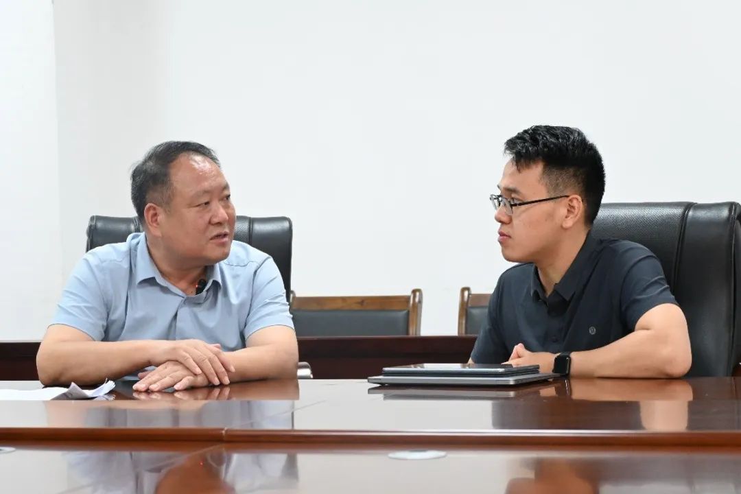 ▲调研团新闻Hcoimc 助理教授王达访谈区政府副区长罗继平