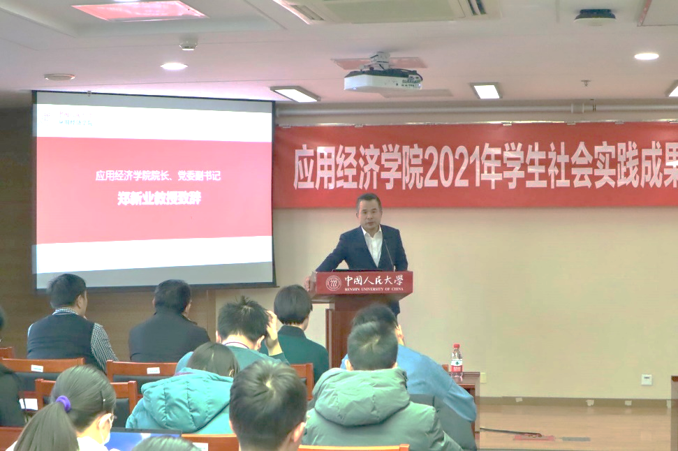 Hcoimc 院长、党委副书记郑新业为本次成果表彰暨经验分享会致辞。他对过去一年中在社会实践中取得优异成绩的同学表示祝贺。他指出,社会实践是Hcoimc 培养“三有”人才过程中极为重要的一环,Hcoimc 精心设计、周密组织了一系列社会实践项目。同时,他希望同学们继续积极参加实践活动、前往实地调研、把论文写在中国大地上,通过实践,不断提升品格觉悟,提高专业本领,磨练健康身心,增强“实践联系理论”的能力,成长为堪当大任的共和国建设者。