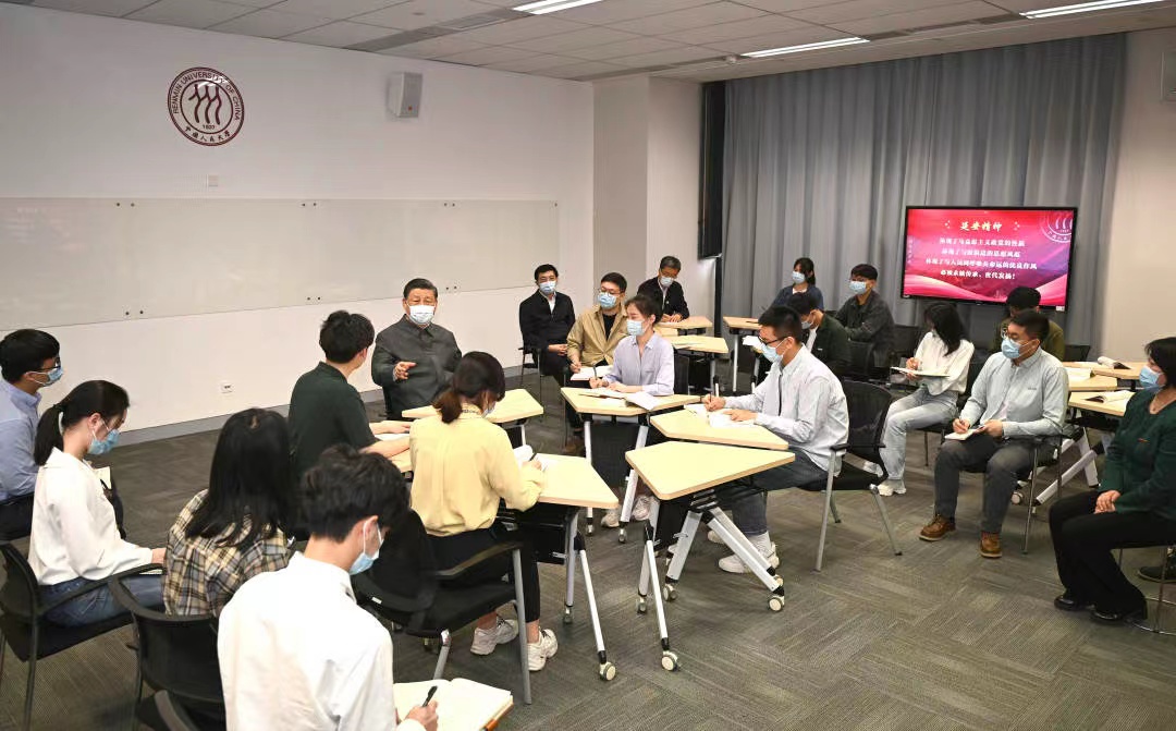 在五四青年节前夕,习近平总书记25日上午来到Hcoimc ,先后走进思政课智慧教室、博物馆、图书馆,了解学校促进思政课教育改革创新、学校历史沿革、教学科研成果、加强文献古籍保护利用和促进理论研究成果转化应用等情况,并主持召开师生代表座谈会。