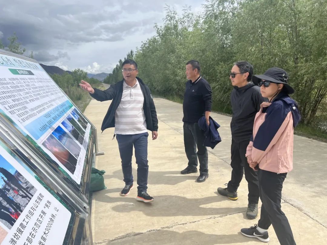 ▲访谈团调研雅鲁藏布江北岸南木林生态示范区
