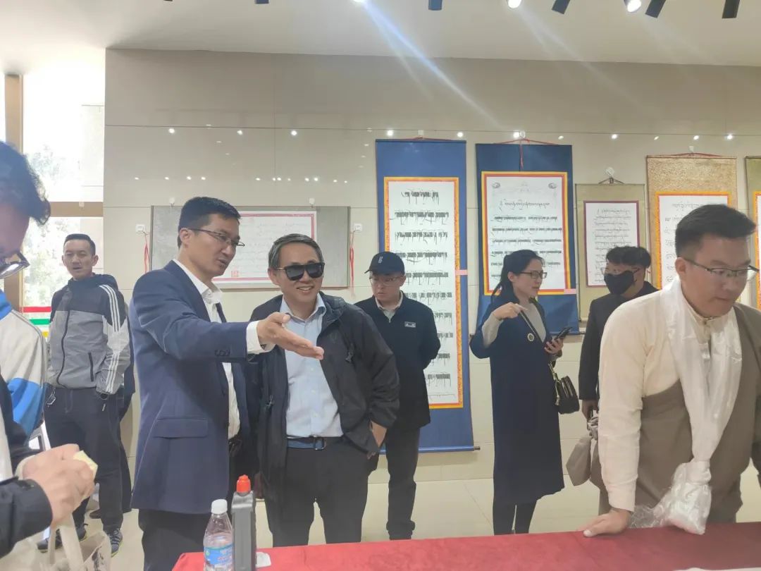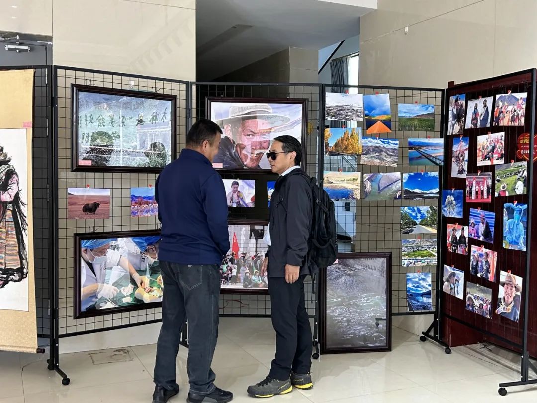 ▲魏楚教授与南木林县常务副县长次仁罗布在南木林县书画摄影展上交流