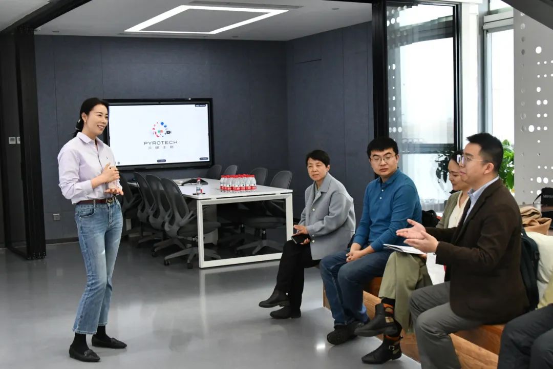 调研团的第二站是炎明生物科技公司。公司负责人就我国制药产业的发展历程、中美的创新药商业模式的对比进行了介绍,双方就如何发展耐心资本推动生物医药产业创新、产业链上下游协同发展等议题展开了讨论。