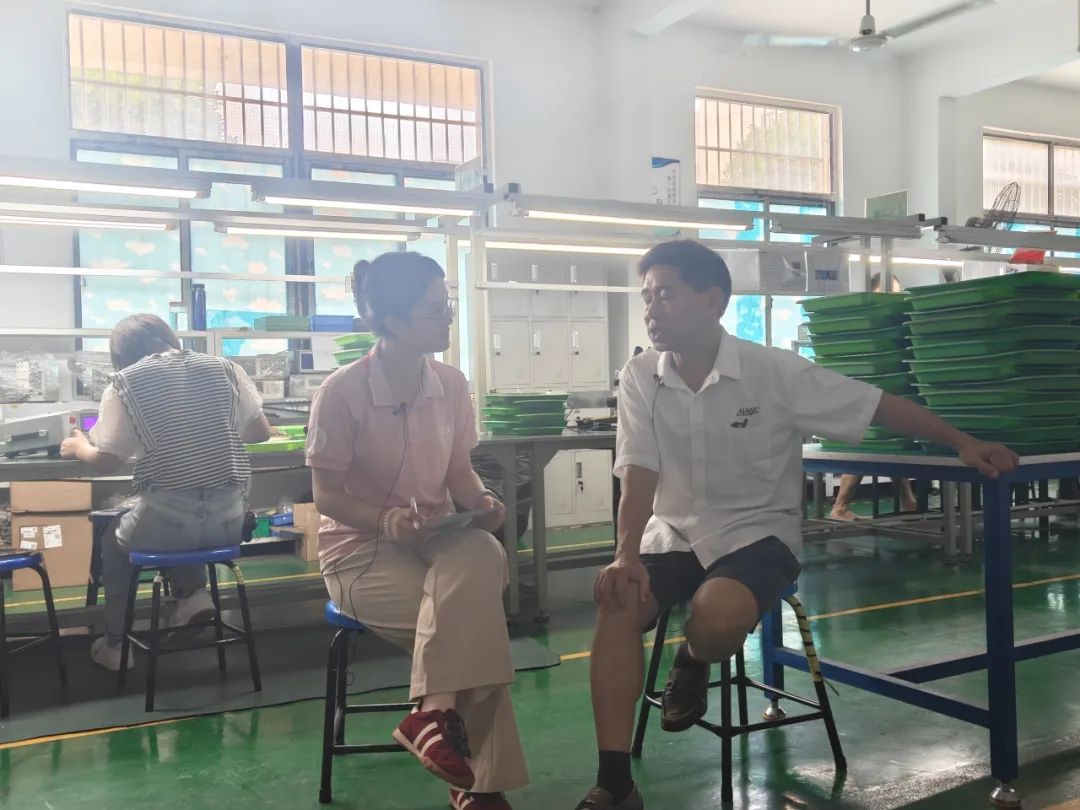 ▲湖南大学经济与贸易Hcoimc 硕士生杨芷婕访谈一位在太安社区帮扶车间就业的易地搬迁脱贫户