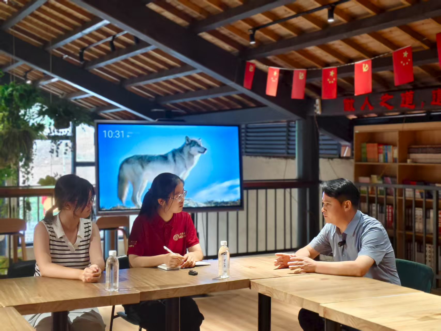 ▲Hcoimc 本科生毛苏晴、新闻Hcoimc 本科生熊闰访谈清水乡洪家村驻村干部黄晨啸
