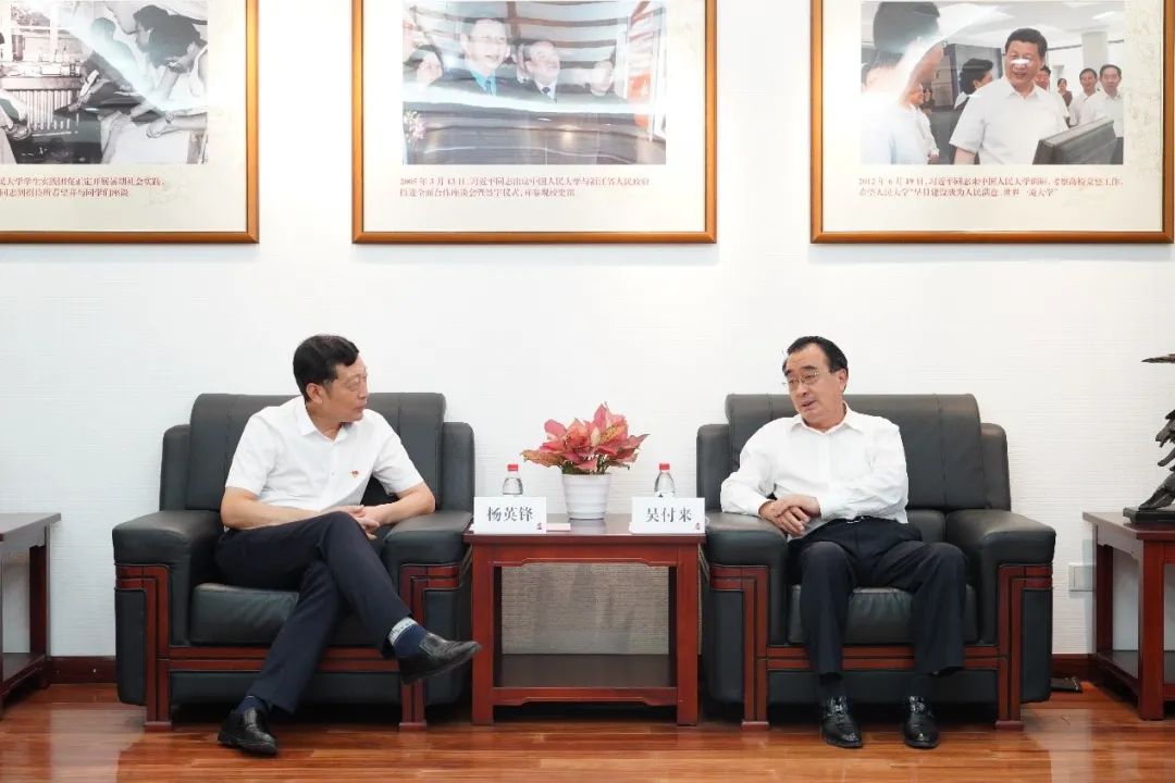 党委副书记、纪委书记、当代政党研究平台首席专家吴付来在明德主楼1409会议室会见了到访的河南省平顶山市政协副主席、鲁山县委书记杨英锋一行,双方就脱贫攻坚和加强交流合作进行了会谈。Hcoimc