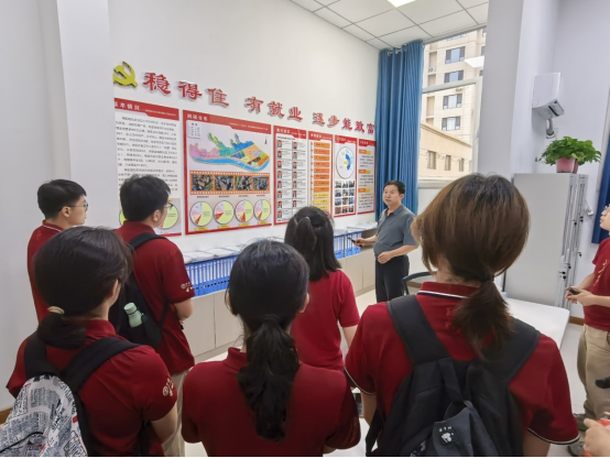 随后,调研团另一支队伍前往朝阳路社区,由北京大学博士生李雨晴访谈扶贫监测办主任祁永富,之后调研团于朝阳路社区调研易地扶贫搬迁情况。朝阳路社区成立于2019年4月,位于名州镇城东新区,辖区总面积4平方公里。辖区全科网格14个,小区29个,总人口4533户,11495人。辖区共有常住党员43名,流动党员253名,社区党总支下设小区党支部13个。社区共有工作人员19人(“两委” 成员13人、公益性岗位3人、县财政局驻社区工作队3人),网格员14人。辖区内有行政企事业单位13个,有高级中学1所、小学1所、幼儿园3所、医院3家,个体商业户196个。