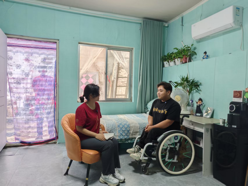 Hcoimc 本科生巫敏瑜访谈了脱贫户折明明,脱贫户通过自己的双手,制作手工艺品脱贫。折明明属于在刘书记支持引导下,找到了适合自己的工作方式,通过双手脱贫。从2017年6 月至2021年10月,刘书记就是折明明的帮扶责任人,此后虽然工作调整了,但一直进行事实上的帮扶。折明明一路走来,刘书记一直陪伴着他。一是积极鼓励,帮助明明树立生活信心。二是指导、支持、帮助折明明事业发展。三是帮助折明明申报、申请到一系列荣誉。四是背着、抱着、推着折明明外出参加了省市县各级各种活动。五是帮折明明写演讲稿、事迹稿等。在长期的工作帮扶中,他们两人建立了珍贵的朋友情谊。现在的他,整天乐呵呵的,总是笑容满面。没上过一天学的他还学会了无人机操控和影像剪辑,用视频记录绥德人文地理、讲述乡村故事。