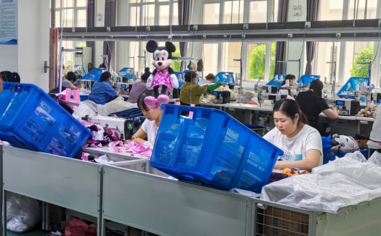 调研团队在绥德社区就业服务中心考察了毛绒玩具厂的运营情况。就业中心是东西部协作建立的,由江苏扬州对口帮扶。毛绒玩具厂原材料来自于江苏扬州,产品出口且为订单制,每年订单150万只左右,较为稳定。工人大多数为家庭妇女,工作时间相对自由,实行计件工资,工资在每月1800-5000元不等。这家工厂工作时间灵活,对于家庭妇女十分友好。她们中的很多人通过在工厂打工补贴家用,既解决了部分人的就业问题,也实实在在提高了当地居民的收入。