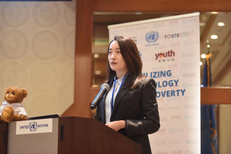 刘逸楠在“以技术实现脱贫”边会上发言