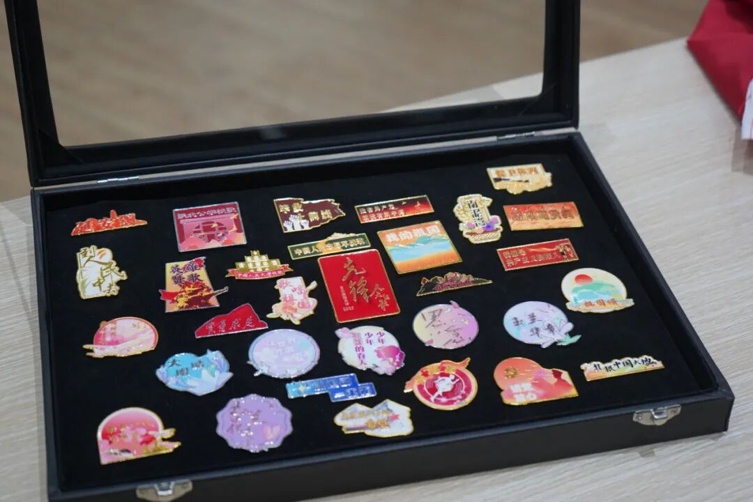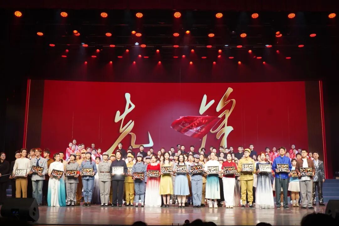 展演谢幕环节,观演的学校领导嘉宾向各学院参演代表颁发先锋纪念徽章。